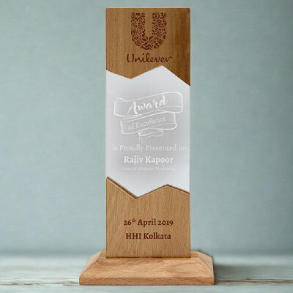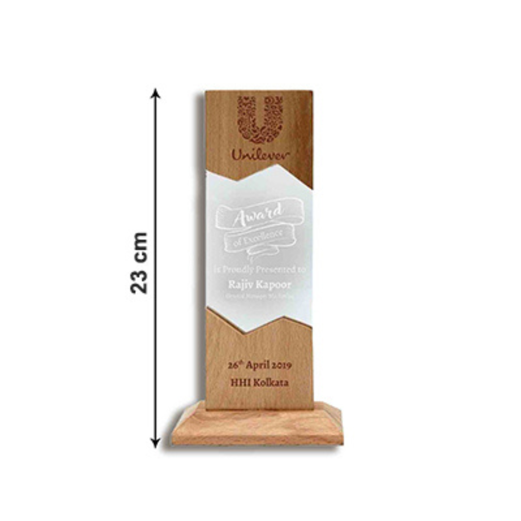 Its clean silhouette provides ample space for custom engraving—whether it’s a name, company logo, event title, or special message. The trophy’s warm wooden texture adds a touch of elegance and sophistication, making every recognition moment truly memorable.