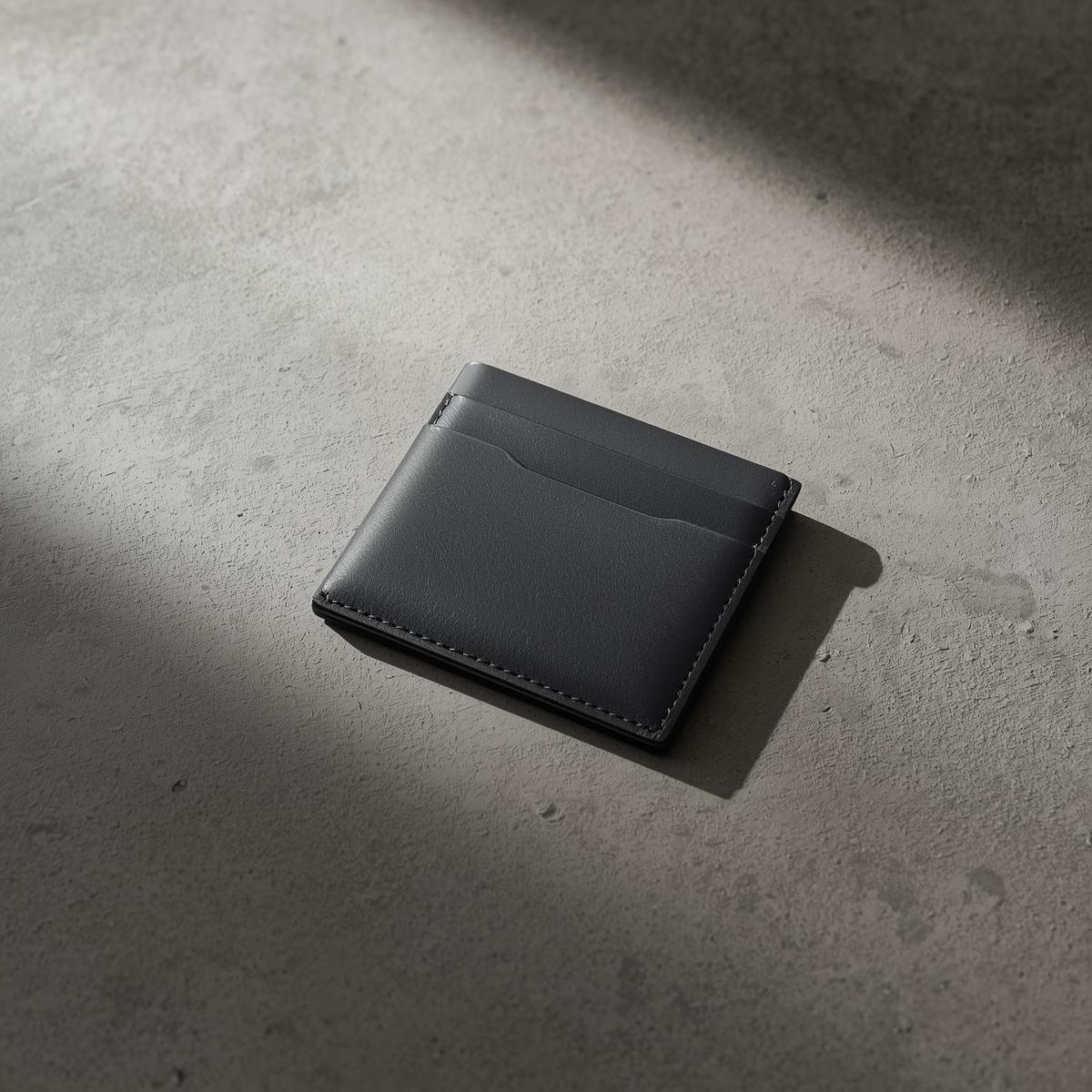 An ultra-slim minimalist grey leather cardholder made for modern professionals.