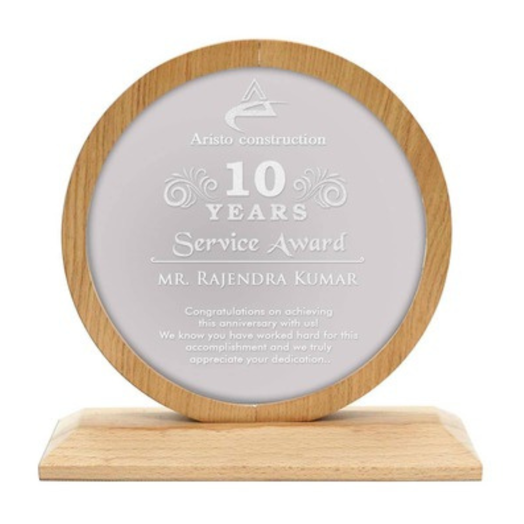 Its clean silhouette provides ample space for custom engraving—whether it’s a name, company logo, event title, or special message. The trophy’s warm wooden texture adds a touch of elegance and sophistication, making every recognition moment truly memorable.