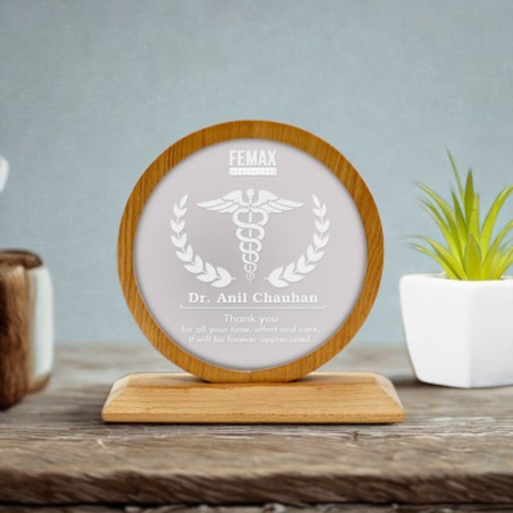 This premium wooden trophy is a timeless choice for honouring excellence. Made from high-quality polished wood, it features a smooth finish and a gold-finish engraving plate that enhances the trophy’s rich and classic look. The sturdy design ensures long-lasting durability, making it ideal for corporate awards, academic ceremonies, sports achievements, cultural events, and personalized gifts.